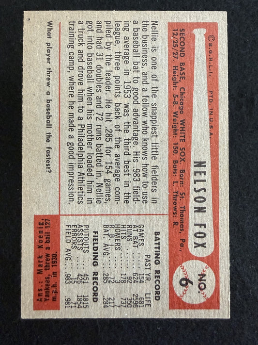 1954 Bowman Nellie Fox (#6) EX Beautiful Condition, MVP, HOFer ^GRUMPYBUCK^