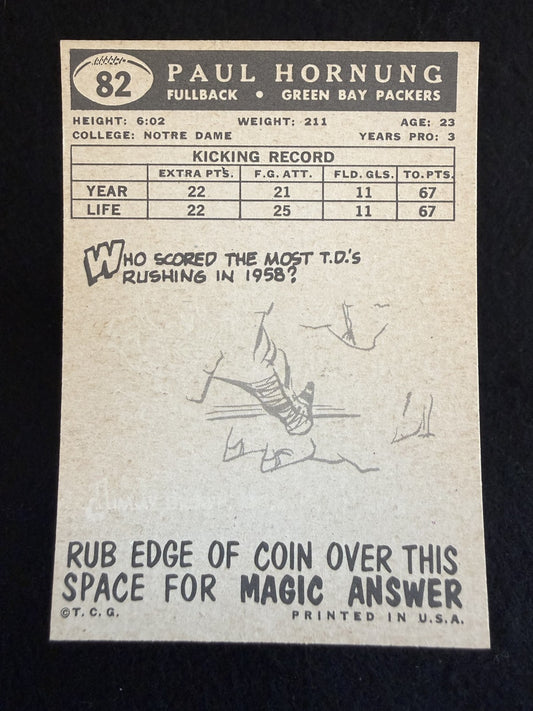 1959 Topps Paul Hornung (#82) Heisman Winner, HOFer, SB/NFL Champ ^GRUMPYBUCK^