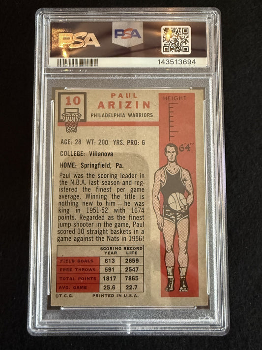 1957-58 Topps Paul Arizin (#10) PSA 3 Fresh Slab! Rookie Card ^GRUMPYBUCK^