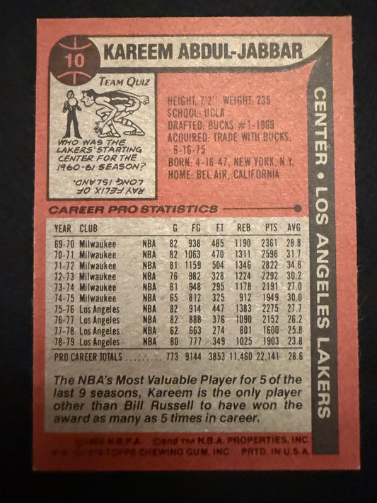 1979–80 Topps Kareem Abdul-Jabbar (#10) Centered, Sharp ^GRUMPYBUCK^