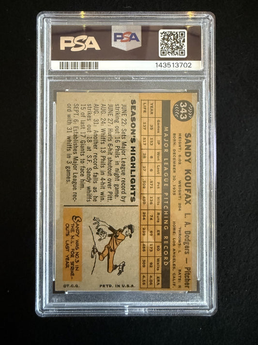 1960 Topps Sandy Koufax (#343) PSA 5 Fresh Slab! HOFer, WS Champ ^GRUMPYBUCK^