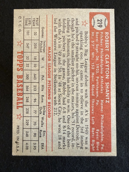 1952 Topps Bobby Shantz (#219) Absolutely Gorgeous, MVP Season ^GRUMPYBUCK^