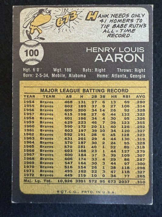 1973 Topps Hank Aaron (#100) EX HOFer, Home Run Champion ^GRUMPYBUCK^