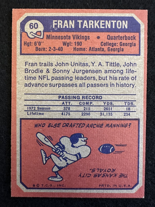 1973 Topps Fran Tarkenton (#60) EX HOFer, Vikings QB ^GRUMPYBUCK^