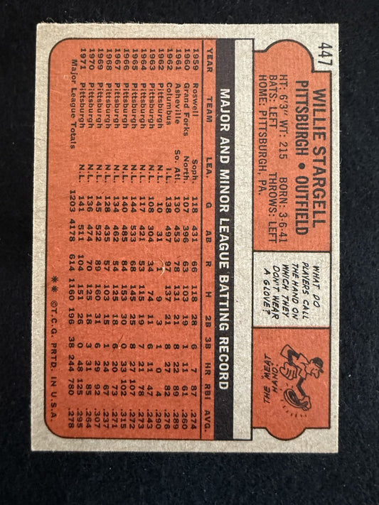 1972 Topps Willie Stargell (#447) EX HOFer, Pirates Captain ^GRUMPYBUCK^