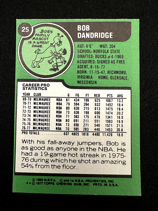 1977–78 Topps Bob Dandridge (#25) EX, HOFer, NBA Champ ^GRUMPYBUCK^