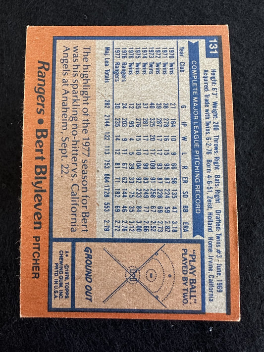 1978 Topps Bert Blyleven (#131) EX HOFer, Rangers Pitching Ace ^GRUMPYBUCK^