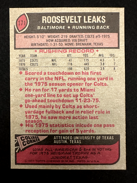 1977 Topps Roosevelt Leaks (#171) NM Longhorn Great ^GRUMPYBUCK^