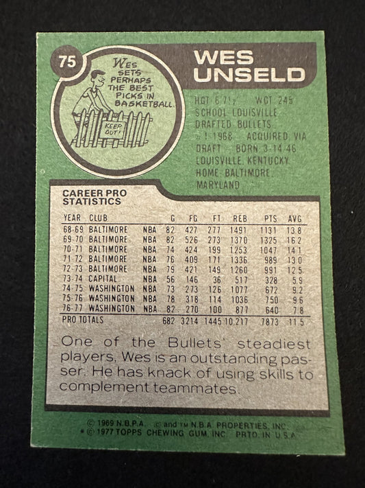 1977–78 Topps Wes Unseld (#75) EX HOFer, NBA Champ, Bullets Great ^GRUMPYBUCK^