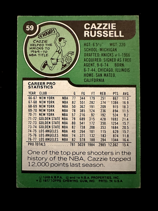 1977–78 Topps Cazzie Russell (#59) EX No. 1 Overall Pick, NBA Champ ^GRUMPYBUCK^