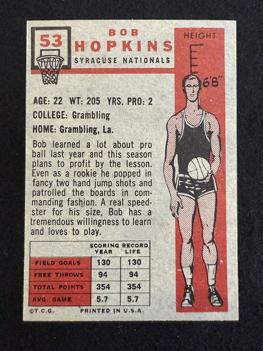 1957-58 Topps Bob Hopkins (#53) EX Rookie Card, Syracuse Nationals ^GRUMPYBUCK^