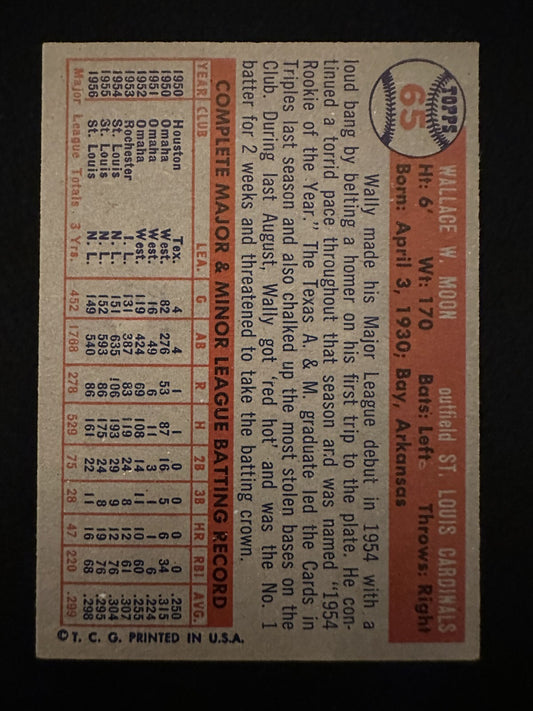 1957 Topps Wally Moon (#65) EX Cardinals OF, Unibrow Icon ^GRUMPYBUCK^