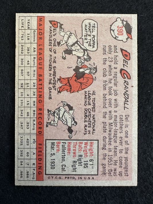 1958 Topps Del Crandall (#390) EX All-Star Catcher, Braves Backstop ^GRUMPYBUCK^