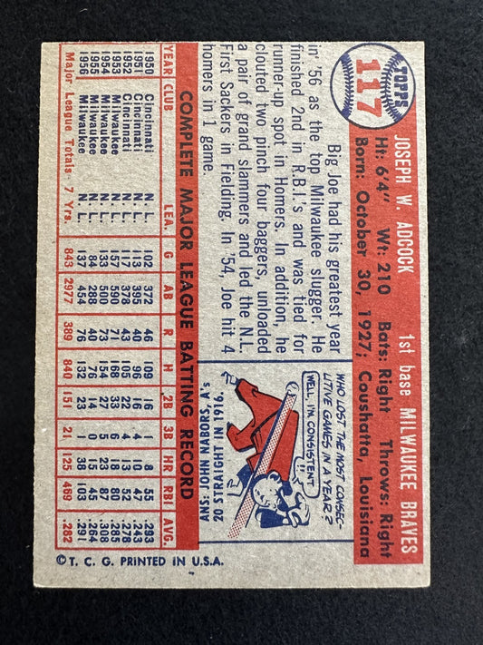 1957 Topps Joe Adcock (#117) EX Braves Power Hitter ^GRUMPYBUCK^