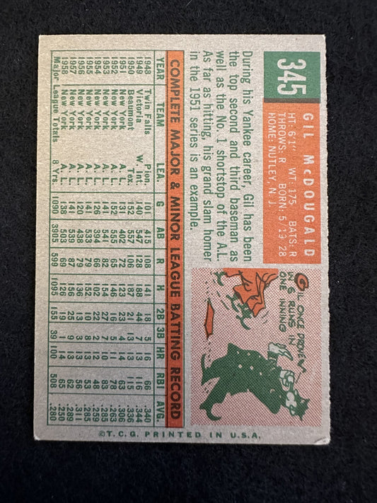 1959 Topps Gil McDougald (#345) EX Yankees Great, All-Star ^GRUMPYBUCK^