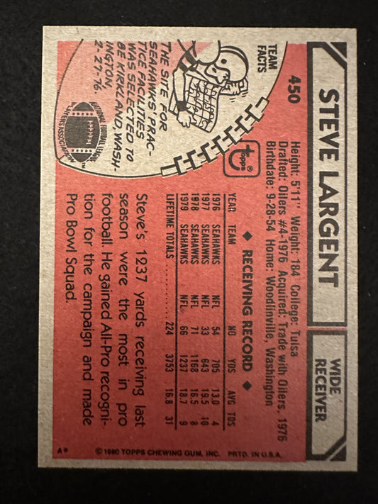 1980 Topps Steve Largent (#450) NM HOFer, Seahawks Legend ^GRUMPYBUCK^