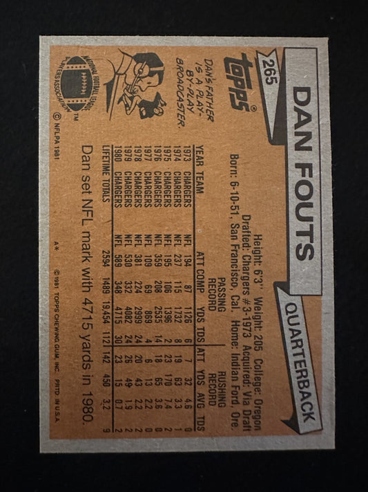 1981 Topps Dan Fouts (#265) NM HOFer, Chargers Great ^GRUMPYBUCK^