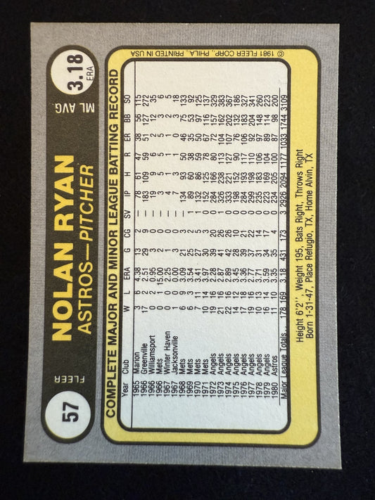 1981 Fleer Nolan Ryan (#57) NM HOFer, Ryan Express ^GRUMPYBUCK^