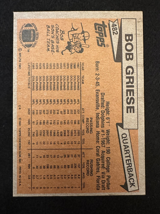 1981 Topps Bob Griese (#482) EX HOF QB, Dolphins Legend ^GRUMPYBUCK^