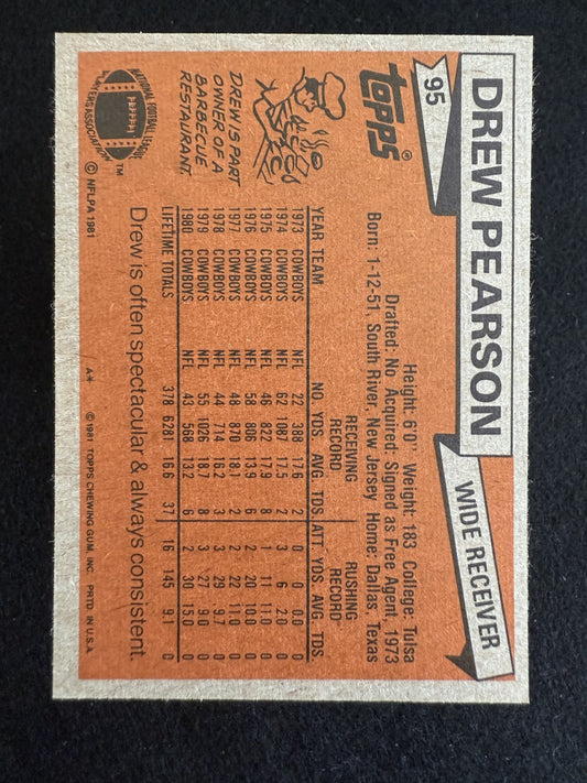 1981 Topps Drew Pearson (#95) NM HOFer, Cowboys Clutch Playmaker ^GRUMPYBUCK^