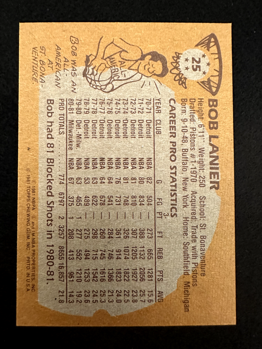 1981–82 Topps Bob Lainer (#25) NM HOFer, Pistons Great ^GRUMPYBUCK^