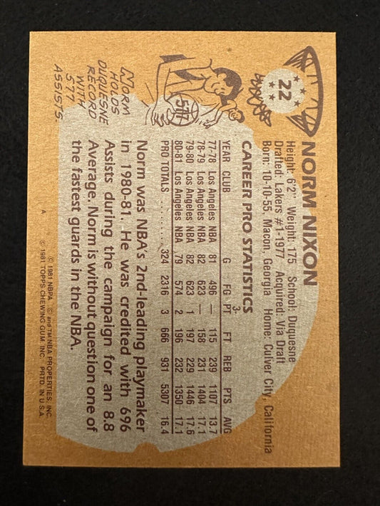 1981–82 Topps Norm Nixon (#22) NM All-Star, NBA Champ ^GRUMPYBUCK^