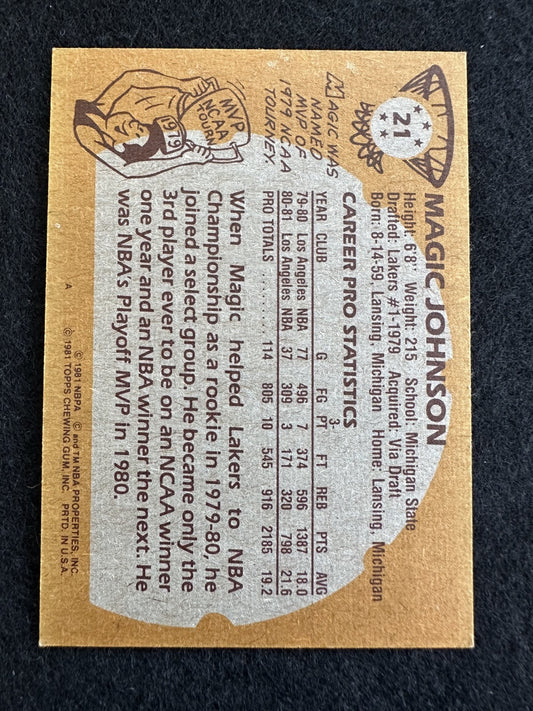 1981–82 Topps Magic Johnson (#21) NM HOFer, Lakers Showtime ^GRUMPYBUCK^