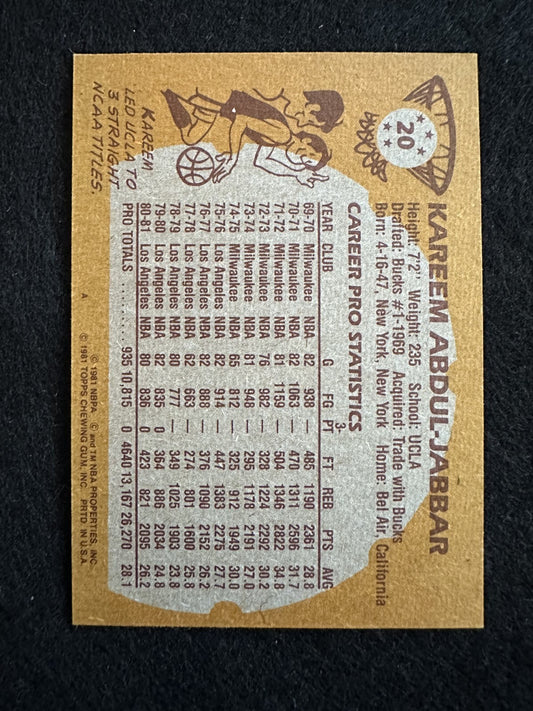 1981–82 Topps Kareem Abdul-Jabbar (#20) NM HOFer, Lakers Legend ^GRUMPYBUCK^
