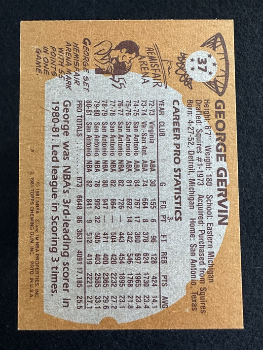 1981–82 Topps George Gervin (#37) NM HOFer, Spurs Legend ^GRUMPYBUCK^