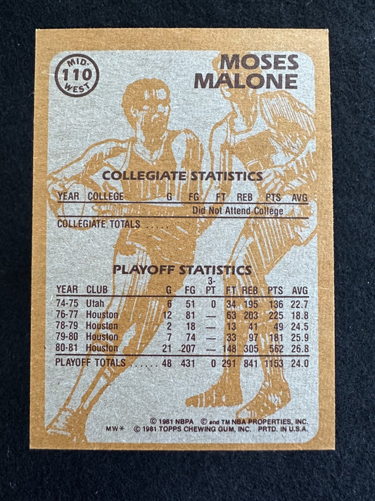 1981–82 Topps Moses Malone (#110) NM HOFer, Rockets & Sixers Star ^GRUMPYBUCK^