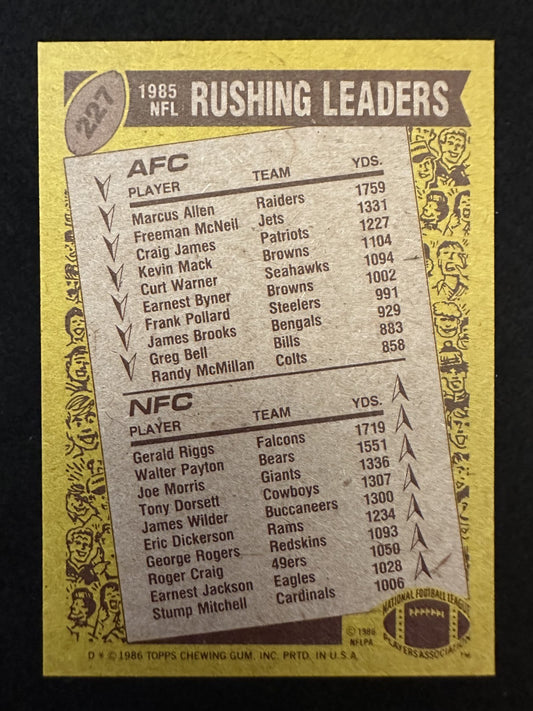 1986 Topps Rushing Leaders Marcus Allen/Riggs (#227 D*) NM HOFer ^GRUMPYBUCK^