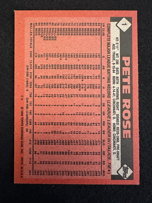 1986 Topps Pete Rose (#1) NM Hit King, Reds Legend ^GRUMPYBUCK^