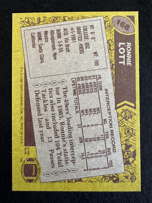 1986 Topps Ronnie Lott (#168 D) NM HOFer, 49ers Legend ^GRUMPYBUCK^*