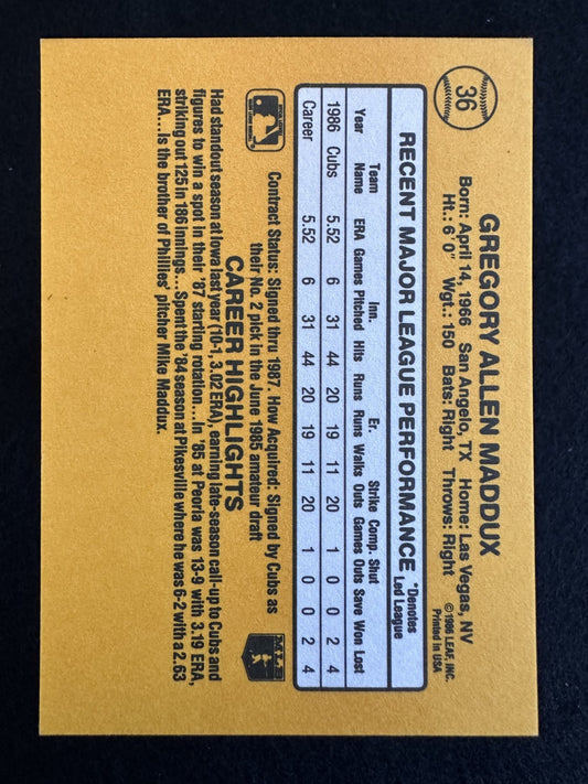 1987 Donruss Greg Maddux (#36) NM Rookie Card, HOFer ^GRUMPYBUCK^