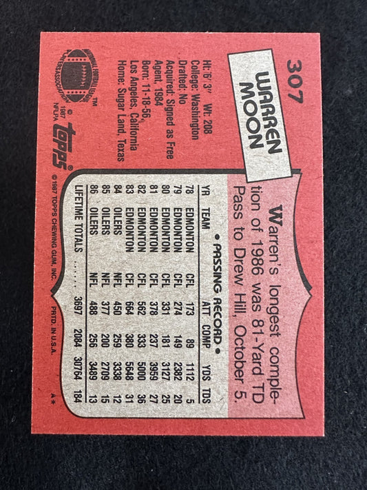 1987 Topps Warren Moon (#307) NM HOFer, Oilers Legend ^GRUMPYBUCK^