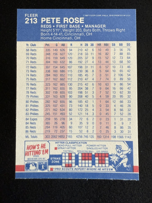 1987 Fleer Pete Rose (#213) NM Hit King, Reds Legend ^GRUMPYBUCK^
