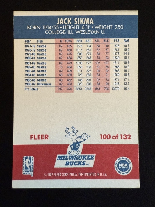 1987-88 Fleer Jack Sikma (#100) NM HOFer, Sonics Center ^GRUMPYBUCK^