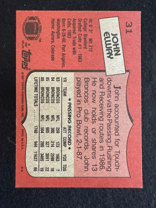 1987 Topps John Elway (#31) NM HOFer, Super Bowl Champ, Broncos ^GRUMPYBUCK^