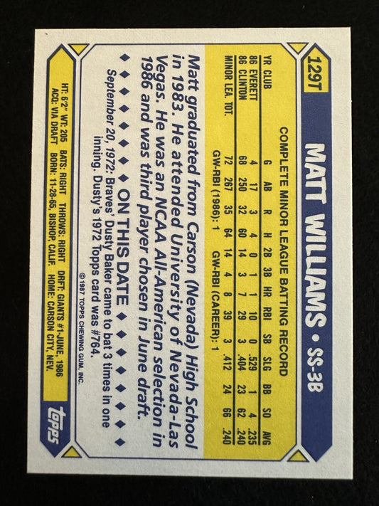 1987 Topps Traded Tiffany Matt Williams (#129T) NM Rookie Card ^GRUMPYBUCK^