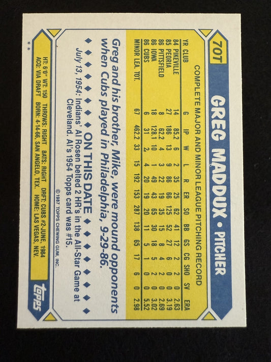 1987 Topps Traded Greg Maddux (#70T) NM HOFer, Rookie Card ^GRUMPYBUCK^
