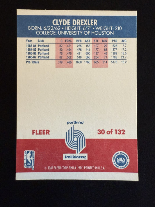 1987-88 Fleer Clyde Drexler (#30) NM HOFer, Blazers “Clyde the Glide” ^GRUMPYBUC