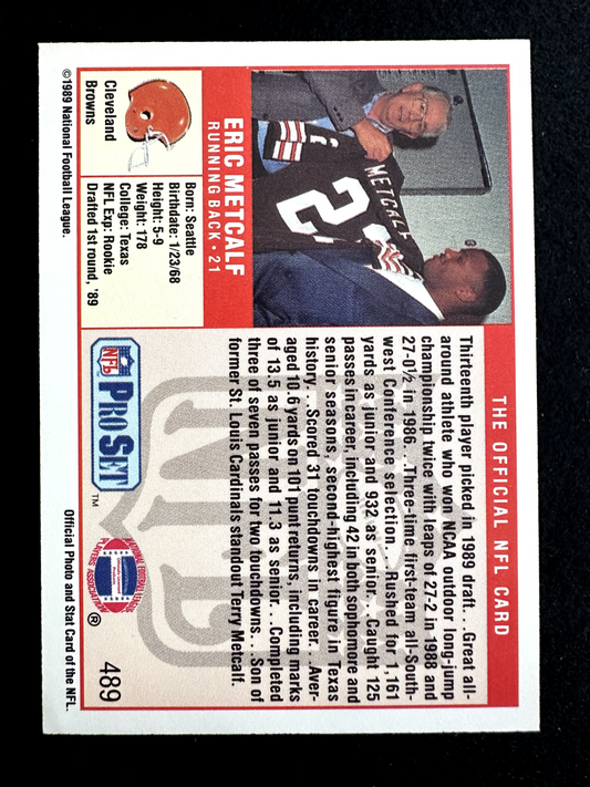 1989 Pro Set Eric Metcalf (#489) NM Rookie Card, Texas Longhorn ^GRUMPYBUCK^