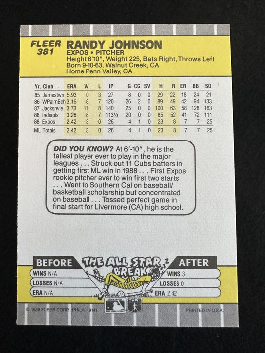 1989 Fleer Randy Johnson (#381) NM HOFer, Rookie Card ^GRUMPYBUCK^