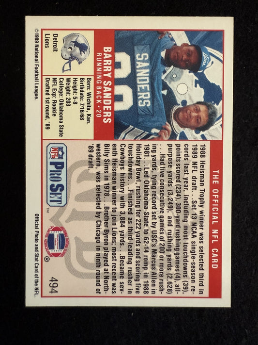 1989 Pro Set Barry Sanders (#494) NM HOFer, Rookie Card, Lions Star ^GRUMPYBUCK^