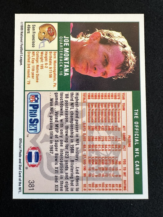 1989 Pro Set Joe Montana (#381) NM HOFer, 49ers Legend, SB Champ ^GRUMPYBUCK^