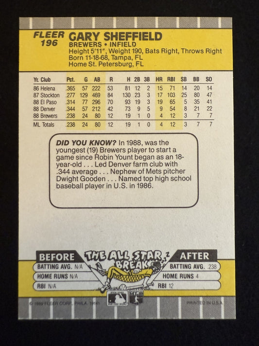 1989 Fleer Gary Sheffield (#196) NM Rookie Card, MLB Slugger/Star ^GRUMPYBUCK^