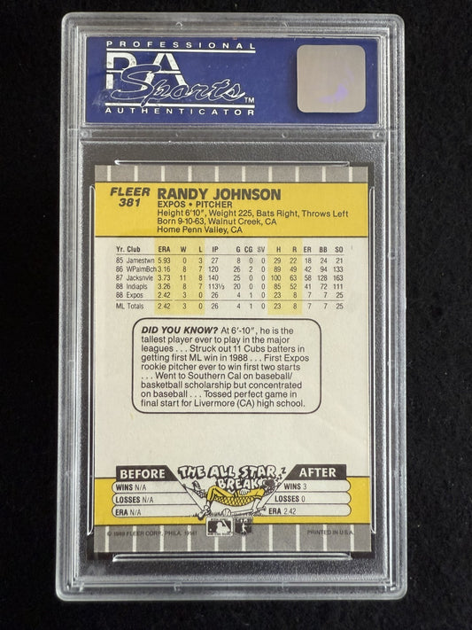1989 Fleer Randy Johnson (#381) PSA 8 Rookie Card, Blacked Out Ad ^GRUMPYBUCK^