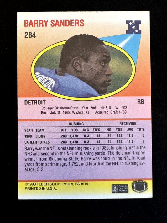 1990 Fleer Barry Sanders (#284) EX HOFer, Heisman Winner ^GRUMPYBUCK^