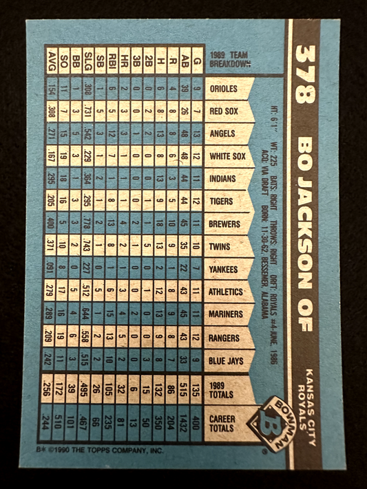 1990 Bowman Bo Jackson (#378) NM All-Star Game MVP, Royals Great ^GRUMPYBUCK^