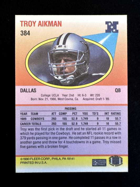 1990 Fleer Troy Aikman (#384) NM HOFer, Future SB Champ ^GRUMPYBUCK^